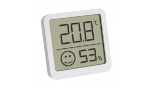 TFA Thermo-Hygrometer mit Smiley-Klimakomfortanzeige, Raumtemperatur, Luftfeuchte (rH), weiß