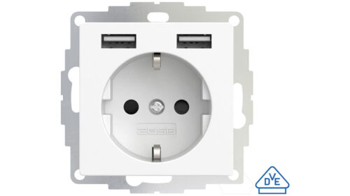 2USB Schutzkontakt-Steckdose mit 2 USB-Ports, reinweiß matt, 55 x 55 mm, VDE zertifiziert