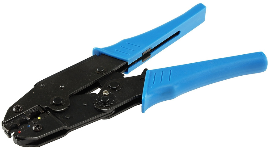 Präzise Crimzange für isolierte Kabelschuhe von 0,5 bis 6,00 mm². Diese Zange ist geeignet für jeden, der Kabelschuhe mit einer Größe von 0,5 – 1,5, von 1,5 – 2,5 oder von 4 – 6 mm² verarbeiten muss.
