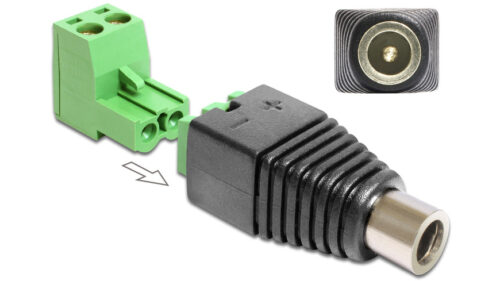 Über diesen DC zu Terminalblock Adapter von Delock können Litzen mit abisolierten Enden angeschlossen werden.