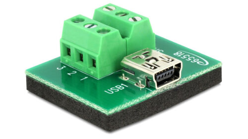 Dieser Terminalblock zu Mini USB Typ B Buchse Adapter ist für spezielle Industrieanwendungen geeignet, z. B. zum Anschluss einzelner Kabelstränge mit offenen Kabelenden.