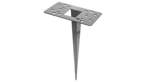 Erdspieß aus hochwertigem Edelstahl. Ideal zur Befestigung von Sockel- und Pollerleuchten sowie Steckdosenverteilern. Mit Kabeldurchführung; Lochmaß 85 × 45 mm und Bohrlöchern Ø 5 mm. Robust, wetterfest und einfach zu montieren im Garten oder Außenbereich.