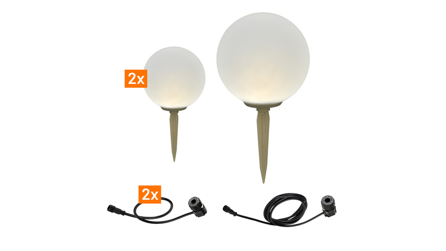 Das Erweiterungsset 24V-Garten Akzentbeleuchtung mit 3 Kugeln ergänzt Ihr bestehendes Beleuchtungssystem um dekorative Lichtobjekte. Mit zwei Kugeln à 20 cm und einer Kugel à 40 cm sowie passenden Anschlusskabeln sorgt das Set für stimmungsvolle Lichtakzente im Außenbereich.