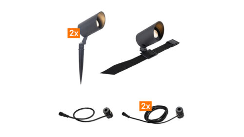 Das Erweiterungsset 24V-Garten Spotlights ergänzt Ihr bestehendes Beleuchtungssystem um drei leistungsstarke LED-Strahler. Mit zwei klassischen Gartenstrahlern und einem flexibel montierbaren Modell sowie passenden Anschlusskabeln eignet sich das Set ideal für gezielte Lichtakzente im Außenbereich.