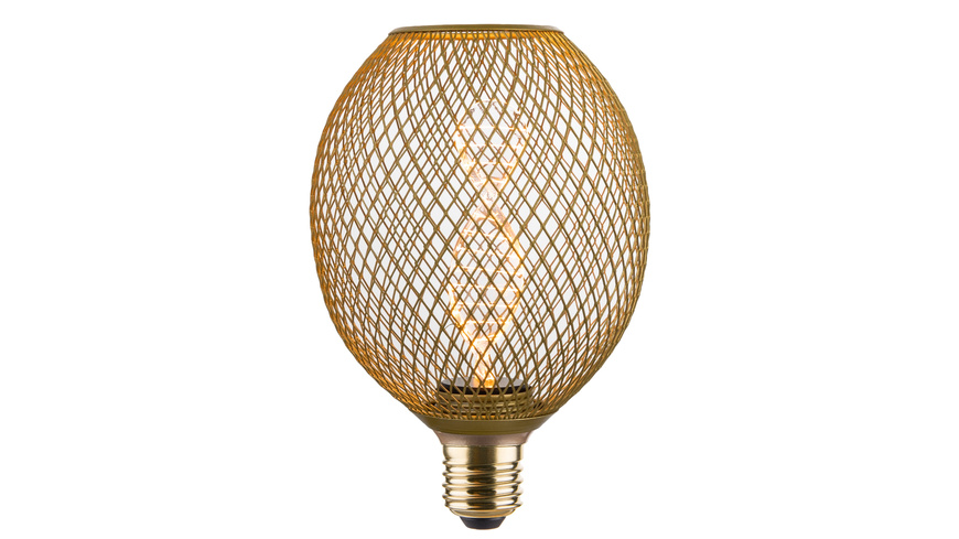 Die ENOVALITE LED-Filament-Lampe DNA MESH in gold mit E27-Fassung, 3,5 W, 120 lm, 1800 K, dimmbar, schafft eine gemütliche Atmosphäre. Ideal für Wohn- und Schlafräume, energieeffizient und stilvoll.