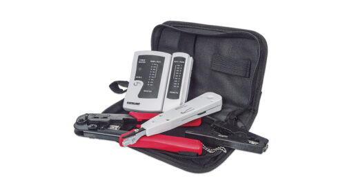 Das 4-teilige Netzwerk-Kit erleichtert die Installation und Überprüfung von Netzwerkkabeln. Sie haben LAN-Tester, LSA-Auflegewerkzeug, Crimpzange und Abisolierwerkzeug griffbereit in der handlichen Transporttasche.