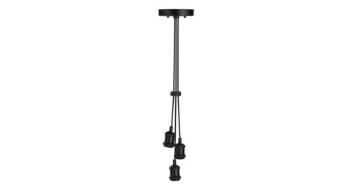 Die Hängeleuchte mit drei E27-Fassungen aus schwarzem Metall und 1,5 m Textilkabel bietet flexible Lichtarrangements und eine gleichmäßige Beleuchtung. Ideal für industrielle Wohnstile.
