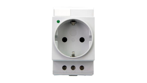 Graue Schaltschranksteckdose mit VDE zum Einbau in Verteilerschränke.