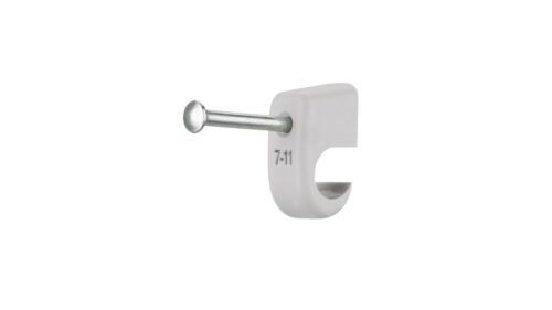 Express-Schelle aus solidem Kunststoff für Kabel mit einem Durchmesser von 7-11 mm. Mit 25 mm langem Stahlnagel.