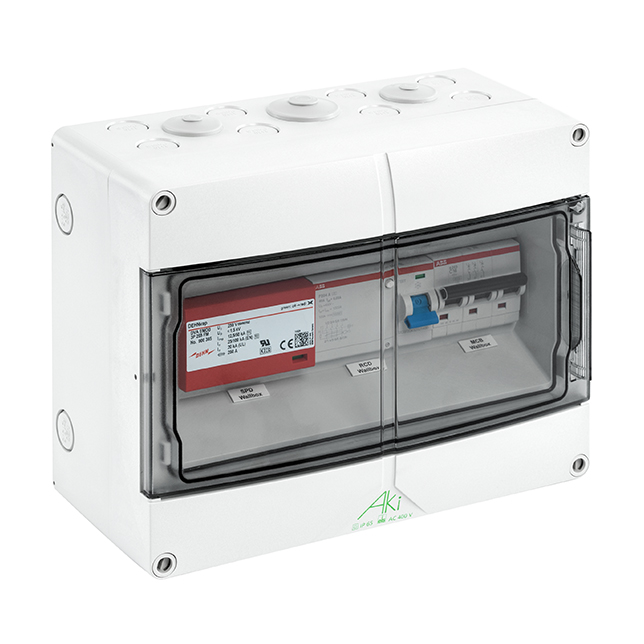 * Spelsberg Kleinverteiler mit Schutzart IP65 * Bauartgeprüft nach EN 61439-3 * Anschlussfertig verdrahtet * Für eine Wallbox 11kW mit integrierter 6mA DC Überwachung * Mit Fehlerstrom-Schutzschalter (RCCB), 40/0,03A, 4-polig, Type A * Mit Leitungsschutzschalter C16A, 3-polig * Mit Überspannungs-Ableiter (SPD) Typ 1 + Typ 2 + Typ 3 für TN-S-Systeme