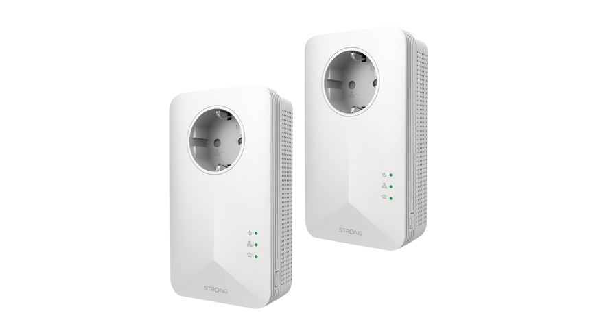 Strong 2er-Powerline-Adapter-Kit 1000 Duo V2, 1000 Mbit/s, mit Durchgangssteckdose