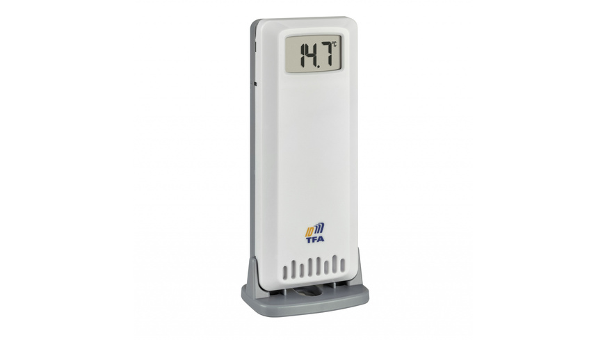 Der zusätzliche Temperatur-/Luftfeuchtigkeitssensor ID-A0 überträgt Temperatur- und Luftfeuchtedaten per Funk an kompatible TFA.me-Wetterstationen.