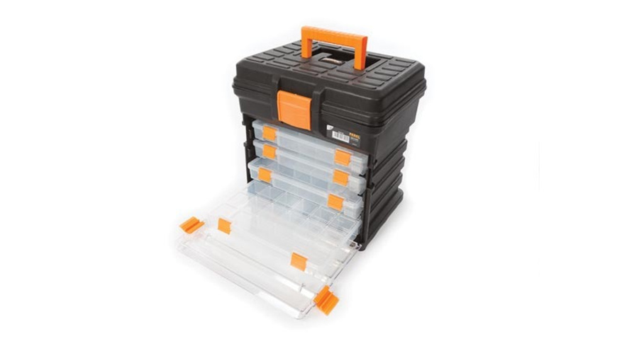 Kompakte Werkzeugbox für die Aufbewahrung von Kleinteilen, Werkzeugen und weiterem Werkstatt-Zubehör.