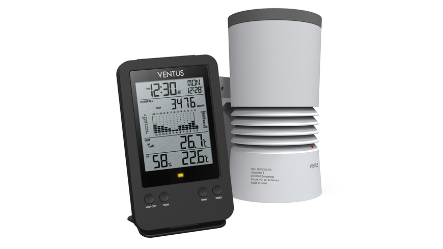 Ventus Funk-Regenmesser W140 mit Basisstation, Niederschlag, Temperatur, Luftfeuchte, 868 MHz